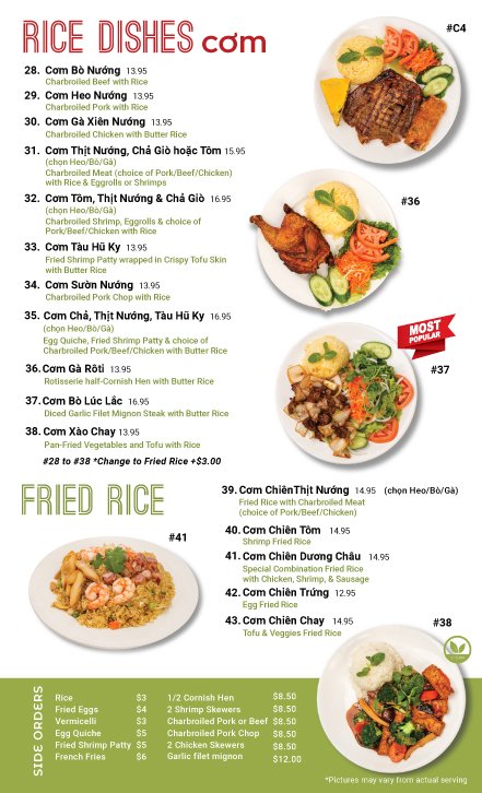 Com Tom, Thit Nuong, Cha Gio (Chon: Heo / Bo / Ga)