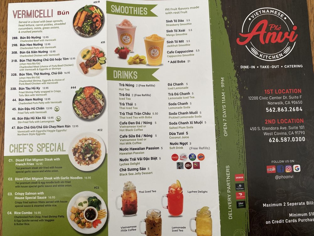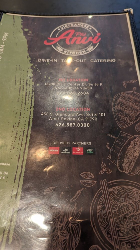 Introducing the Vietnamese-Asian fusion restaurant, Pho Anvi, located in Norwalk, CA. A trendy and casual spot that offers a variety of vegan and limited vegetarian options. Known for their delicious pho, like the Meatball and Brisket Pho, and generous meat portions. The Oxtail Pho is a must-try, served with basil and bean sprouts on the side. Customers rave about the flavorful broth and house-made noodles. The restaurant provides a pleasant ambiance with attentive staff and fast service. While some dishes may be a bit oily, the overall dining experience at Pho Anvi is highly enjoyable. Try their outstanding egg rolls and hearty steak and tendon pho for a fulfilling meal. With options for brunch, lunch, and dinner, Pho Anvi is perfect for groups and families looking for a satisfying dining experience.