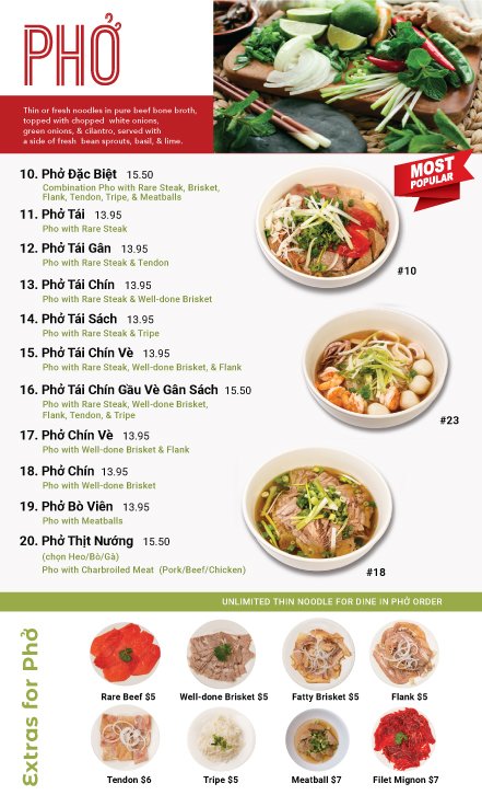 Pho with Rare Steak, Brisket, Fatty Brisket, Flank, Tendon, Tripe
